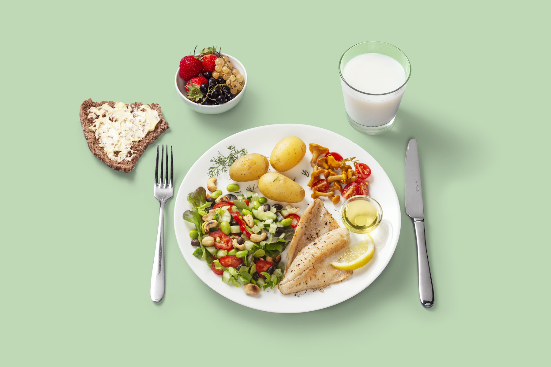 Lounas, päivällinen ja illallinen ovat usein päivän pääaterioita aamupalan ohella. Siksi niiden monipuolisuuteen ja riittävyyteen kannattaa panostaa ja hyödyntää lautasmallia aterioiden koostamisessa.