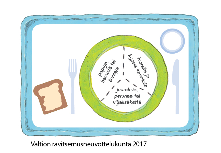 • Lautasmalli toimii hyvänä tukena tasapainoisten ja terveyttä edistävien aterioiden toteuttamisessa.